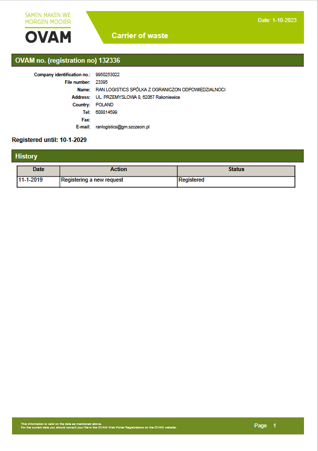 Pozwolenie Odpady Belgia