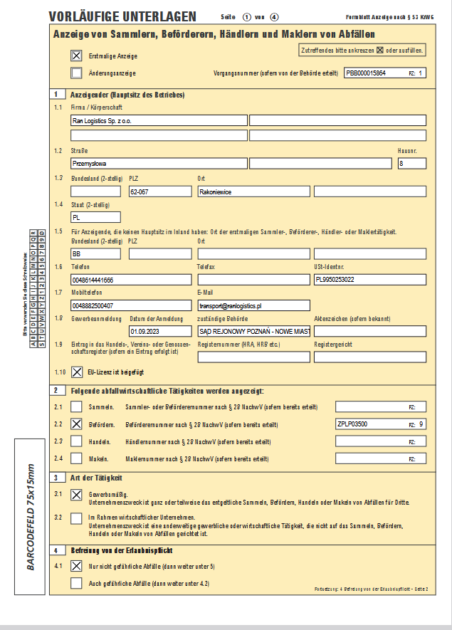 Pozwolenie Odpady Niemcy