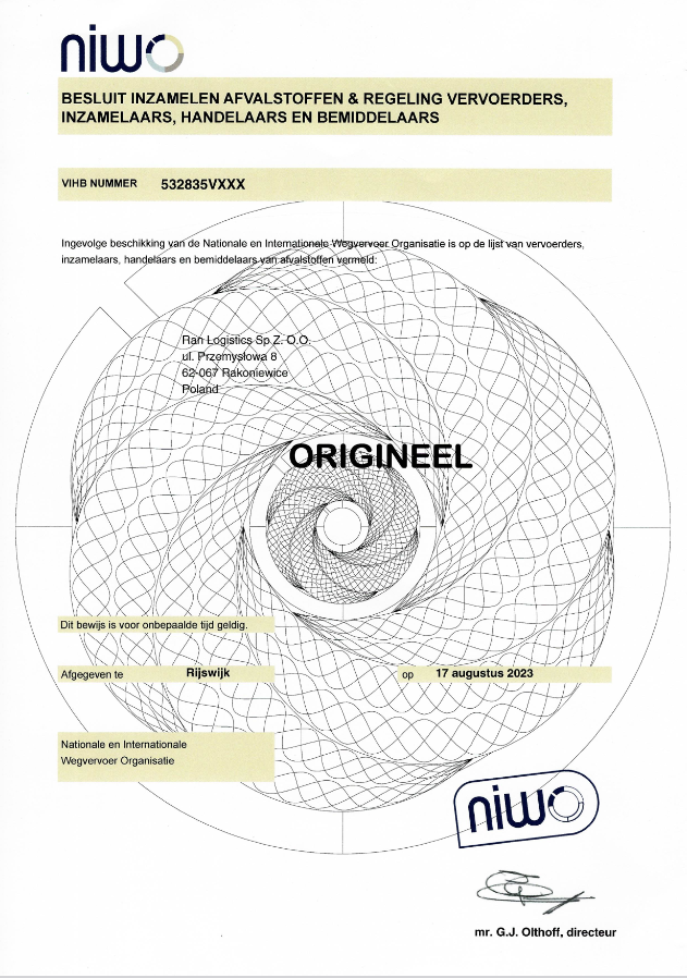 Pozwolenie Odpady Holandia